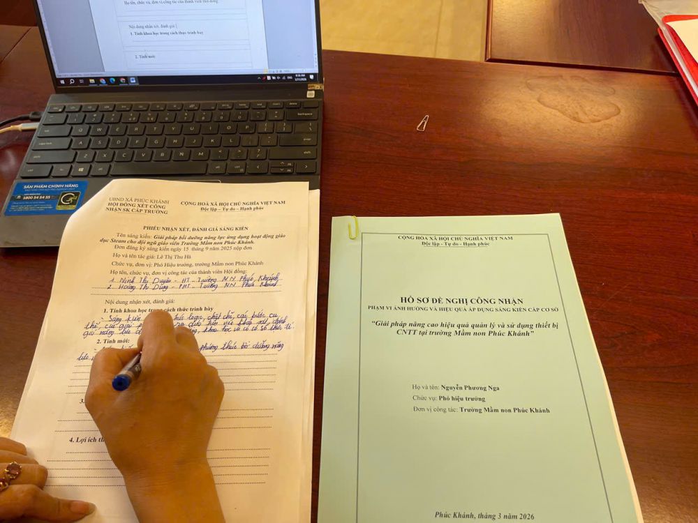 Công tác xét công nhận sáng kiến năm học 2025 - 2026 của trường Mầm non Phúc Khánh