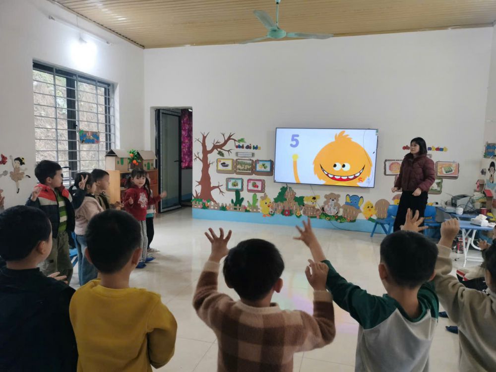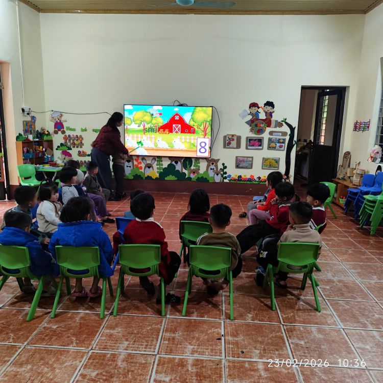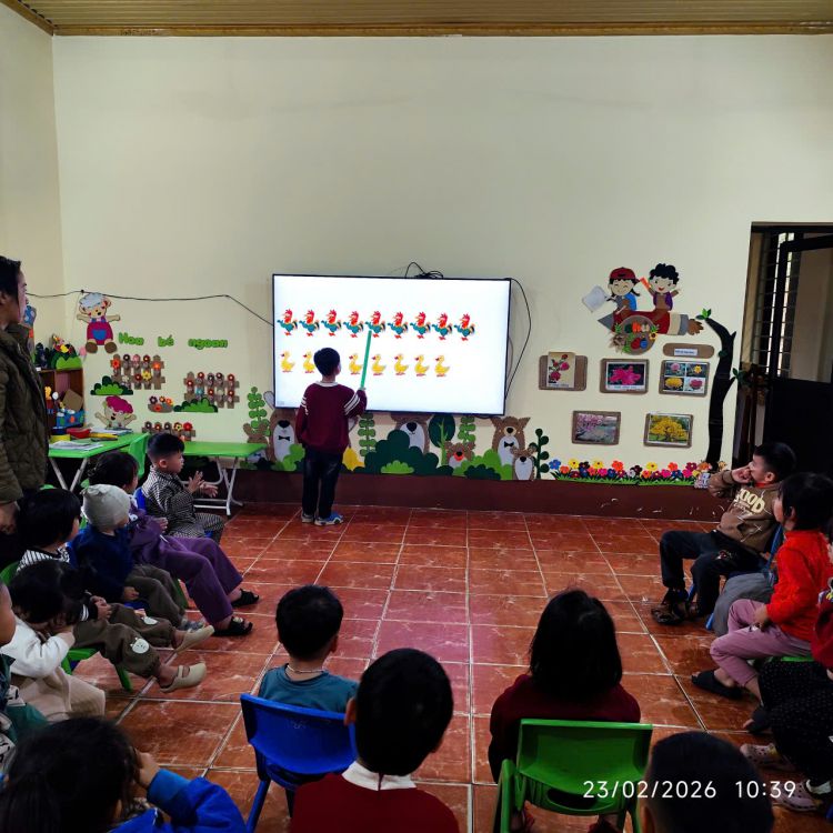 Tại các lớp mẫu giáo, cô giáo tổ chức hoạt động học nhẹ nhàng, tạo tâm thế vui tươi cho trẻ trong ngày đầu trở lại trường. Hình ảnh cô và trò cùng tham gia tiết học nhận biết số trên màn hình giúp các con vừa ôn lại kiến thức, vừa tập trung nề nếp sau kỳ nghỉ dài. Không khí lớp học trật tự, hào hứng, các con mạnh dạn giơ tay phát biểu.