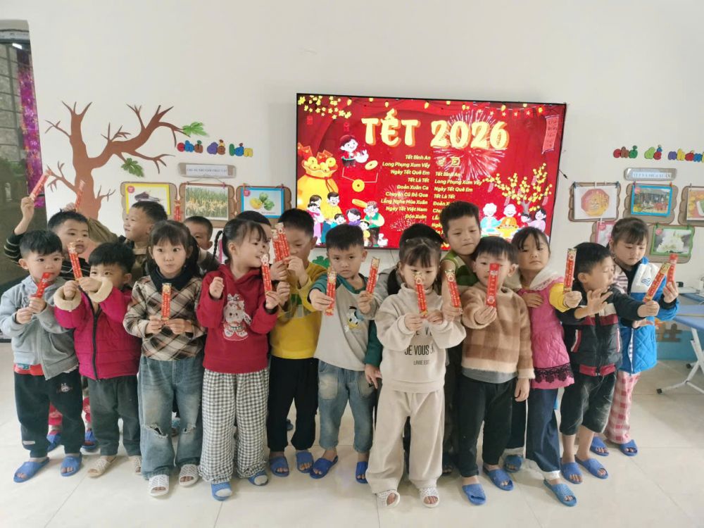 Đặc biệt, hoạt động lì xì đầu năm mang lại niềm phấn khởi cho các con. Những phong bao đỏ nhỏ xinh là lời chúc chăm ngoan, học giỏi, khỏe mạnh mà nhà trường và cô giáo gửi đến các bé trong năm mới 2026.