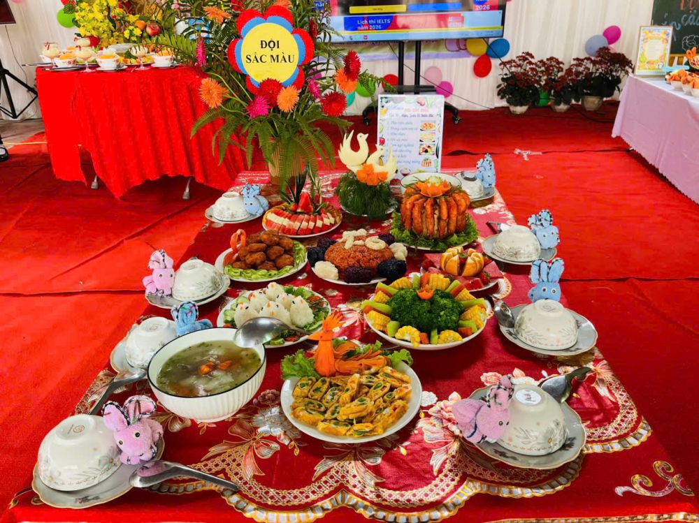 Đặc biệt, phần thi Chung sức là phần thi sôi nổi và hấp dẫn nhất. Các đội đã khéo léo chế biến, trình bày những mâm cơm dinh dưỡng đẹp mắt, đảm bảo đầy đủ các nhóm chất cần thiết cho sự phát triển của trẻ. Mỗi món ăn đều được thuyết trình rõ ràng về nguyên liệu, giá trị dinh dưỡng và ý nghĩa, thể hiện sự tâm huyết của giáo viên và phụ huynh trong việc chăm sóc sức khỏe cho trẻ.